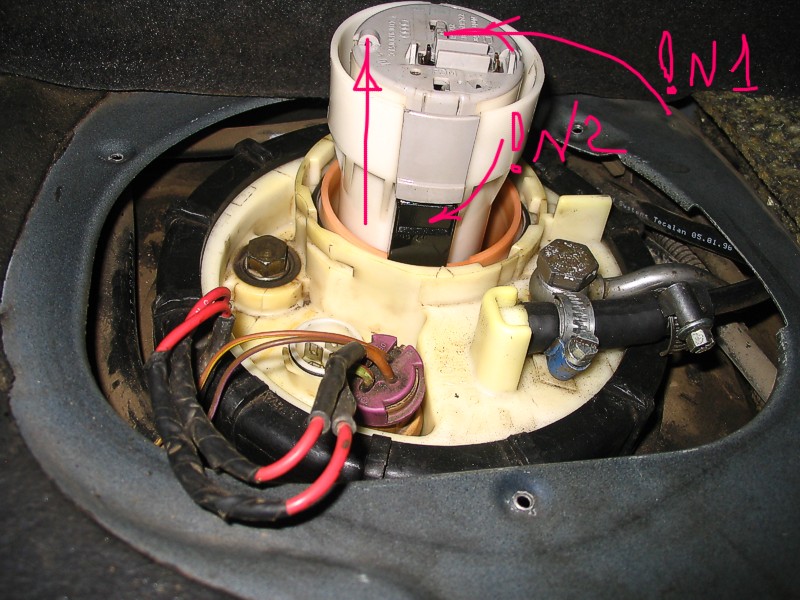 3. сбрасываем фишку бензонасоса, откручиваем напорную магистраль (ОСТОРОЖНО, попрет горючка), затем обратку, берем вагтул №1 (см ниже), откручиваем крышку измерителя
