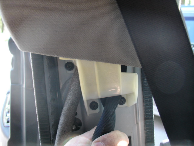 При обратной сборке ,когда будете ставить на место внутреннюю обивку центр.стойки ,обратите внимание на то,чтобы эта панель стала на свое место по направляющей(находится сразу под креплением ремня) для корректной работы ременного механизма и механизма подъема ремня