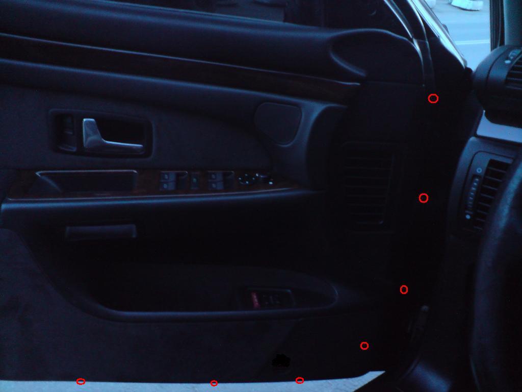 Итак, зазор максимален, что же там нужно разглядеть!? А увидеть нужно две… ”петельки”, если хотите, через зазор они легко проглядываются. Для понимания дела они показаны на фото ниже, уже после того, как зеркало снято.