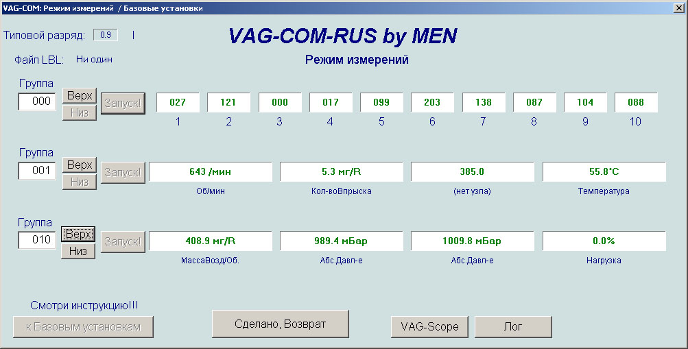 Маленько до меня логика измерений не доходит... Основывался я на описания в Else... Ну вот там написано как воздухомеры проверить, при оборотах 3100-3200 в 10 группе должны быть такие показания= 505mg/S 1010mbar >1200mbar 18%