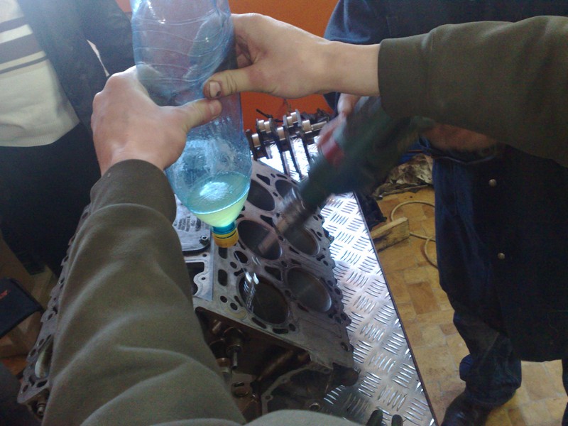 5. Вскрытие клапанных крышек ничего страшного не показало. Распредвалы в близком к хорошему состоянию, всех натажителей распредвальных цепей не видно. Из-за конструкции двигателя AZC долго мучались что бы снять задние крышки (две) не снимая мотор. Получилось. Проблем не видно. Было принято решение снять головки (на всякий пожарный проверить).... ...Итак результаты на фото: