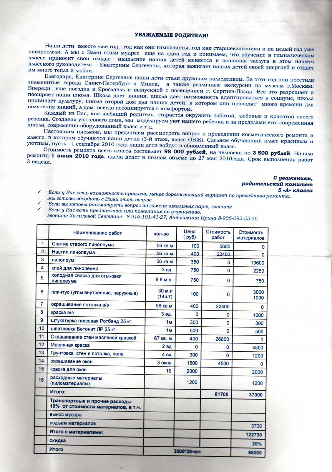 Так уж лучше один раз формально заплатить, чем на каждом собрании выслушивать нелепые причины для поборов: как сыпется потолок, текут краны, линолеум в жвачке.... Вот нам, например, последний раз сказали принести 500р. на туал. бумагу с каждого ученика. Не сложно подсчитать сколько это рулонов