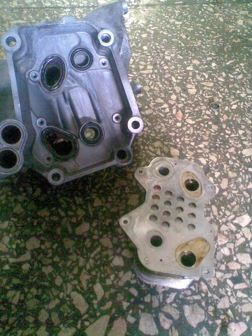 Всем доброго времени суток! Вот и меня посетила столь известная всем вам проблема с течью маслоохладителя, но в отличие от многих, написанных здесь отзывах, не снимая двигатель снять теплообменник не получилось: сорвал грани в 2 самых неудобных болтах крепления. Но мой вопрос не в этом. Прочитал, вроде бы, все подобные отзывы и не нашел информации о 4 внутренних кольцах радиатора маслоохладителя (как на предидущем фото (двигатель AQH)). Может кто всеже сталкивался, а то мне что-то "тракторные кольца ГОСТ9833-73 025-031-36" большого доверия не внушают...