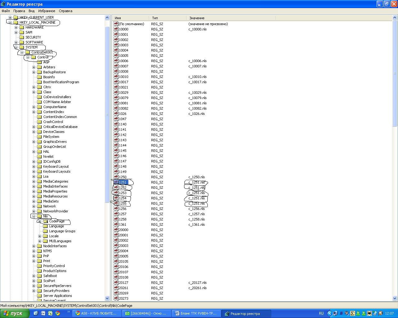 пуск, выполнить. вводишь regedit и дальшеANDREY_XXX писал(а):Вот с этого места поподробней пожалуйста)))Andryuxa писал(а):тебе в реестре windows нужно кодировку поменять... И русский будет ОКANDREY_XXX писал(а):Уменя есть русская версия, но там описание ошибки как кракозябра) ничего не понятно