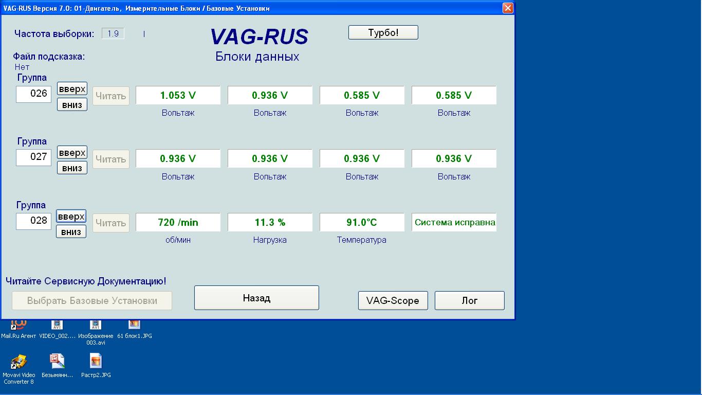 наскока я понимаю, нормальная напруга на катушках на ХХ - 0,4-0,6В, а у тебя поголовно в районе 1ВLinc писал(а):Позырил ВАГом катушки. Вот. Выкладываю. Обратил внимание - обороты ровно 720 и потряхивает ))))