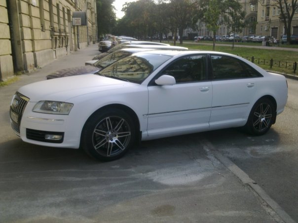 Всегда мечтал о белой А8, вот решился таким образом воплотить свою мечту, машины была полностью перетянута в белый мат, крыша перетянута в черный глянец. Вот собственно результат, фото не супер снимались на обычную мыльницу, в жизни авто выглядит очень приятно, полностью доволен результатом