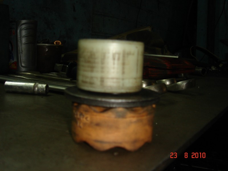 Так как этот стакан по диаметру больше кожуха его отуда не вытрести и он постоянно мешал завести новый сайлент и рассположенные, там еще шайбу и отбойник (выше на фото оранжевый).Пришлось сделать из одной проволочки крючек и поймав на него этот стакан отодвигать его в сторону,затем вытряхивать оттуда старый сайлент и отбойник с шайбой. А назад загонять по другой проволочке которая сразу и направляет и центрует эти же детали