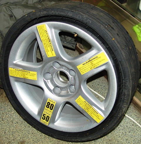 Первый раз такую увидел, интересное решение проблемы размера запасного колеса. Ставилось на Audi Allroad. Внутри запаски лежит компрессор для накачки.