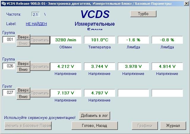 По катушкам я походу неправильно их смотрю. Зашел в блок 01 - Электроника двигателя1 и в 02 - Электроника двигателя2, далее 08-измеряемые величины и вписываю группы 026 и 027 - так там у меня просто напряжения (видимо на катушках) - при увеличении оборотов напряжение растет с 0,3-0,4В на ХХ, до 8 примерно на 4000об. а пропуски как посмотреть?