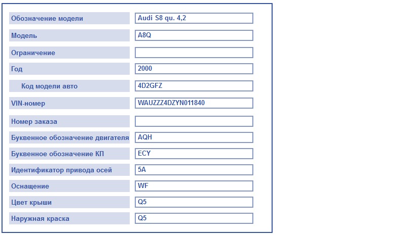 Vin-код автомобиля WAUZZZ4DZYN011296