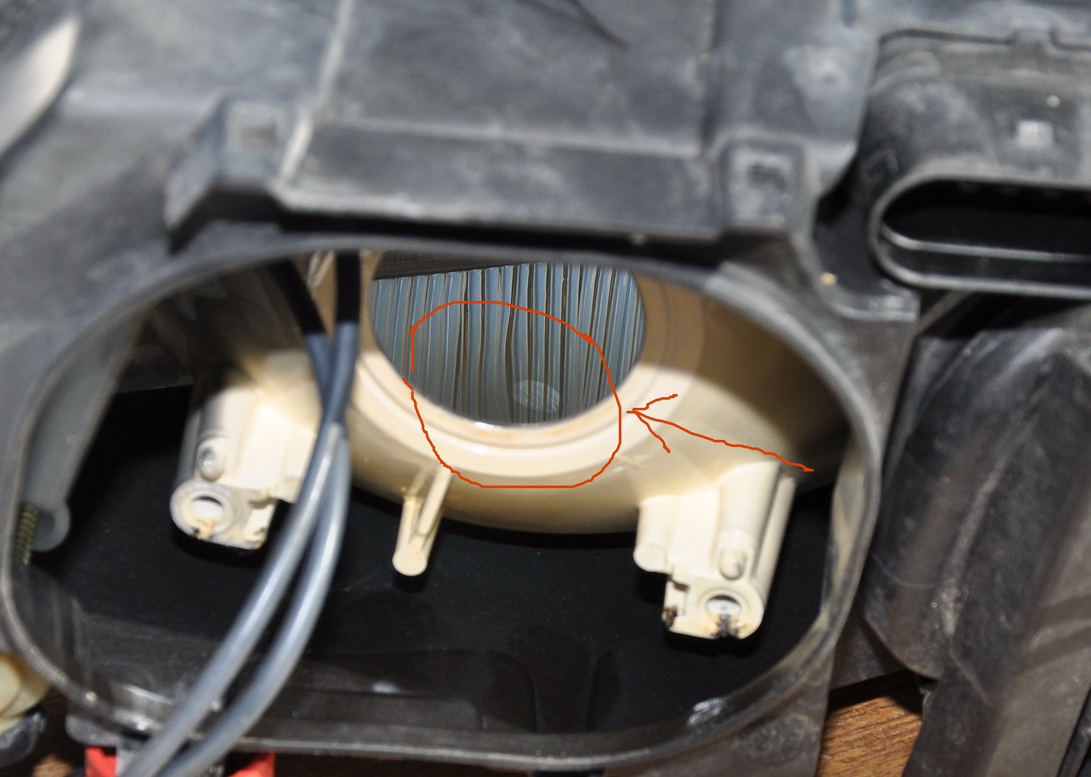 Открыв одну из крышек на фаре,где расположен блок ближне-дальнего света, так называемый "биксенон" я увидел следующую картину.