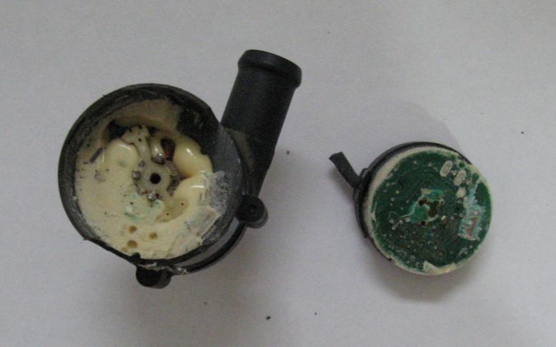 Помпа представляет собой бесщеточный двигатель постоянного тока (внутри под крышкой смонтирована электронная схема, включающая–выключающая обмотки статора. К сожалению, вскрыть ее не удалось, она запаяна