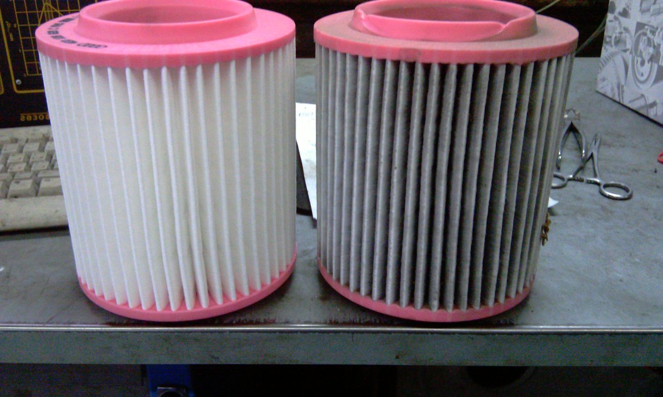Причина горящего жёлтым чекэнжина: умирающий расходомер воздуха. Штатными средствами его умирание не диагностируется. Отловлен был умельческим способом, при помощи нештатной приспособы. В двух словах: с ДРМВ был скинут разъём. В разрыв между гнездом и штекером воткнута перемычка с доступом к контактам, что позволило замерит рабочее сопротивление датчика. По штатному должно быть 1 кОм с жёсткой неравномерностью до 1%, по факту было 1,32 кОм. Цена вопроса: 4 500 рублей за восстановленный на VAGе датчик + воздушный фильтр. Обратите внимание на фильтр. Пробег менее 5000, фильтру воздушному уже пришёл конец. Второй момент, это верхняя кромка старого фильтра. Идиоты с небуду-называть-какого-сервиса умудрились замять фильтр при установке. Это очень не есть гут. Моторист на полном серьёзе предупредил, что смерть ДРМВ с вероятностью 99% произошла из-за несвоевременной смены воздушного фильтра. Менять его надо вместе с заменой масла ОБЯЗАТЕЛЬНО.