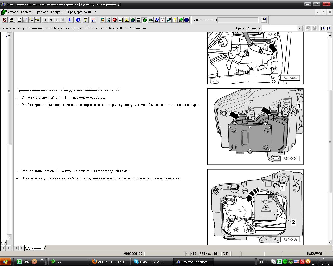 Указания по применению и правила техники безопасности при работе с газоразрядными лампами → Электрооборудование - Общая информация; Группа ремонта94.