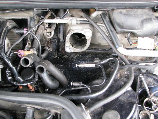 Под корпусом отопителя есть водосток, к которому я не смог подобраться ранее. Вот он: