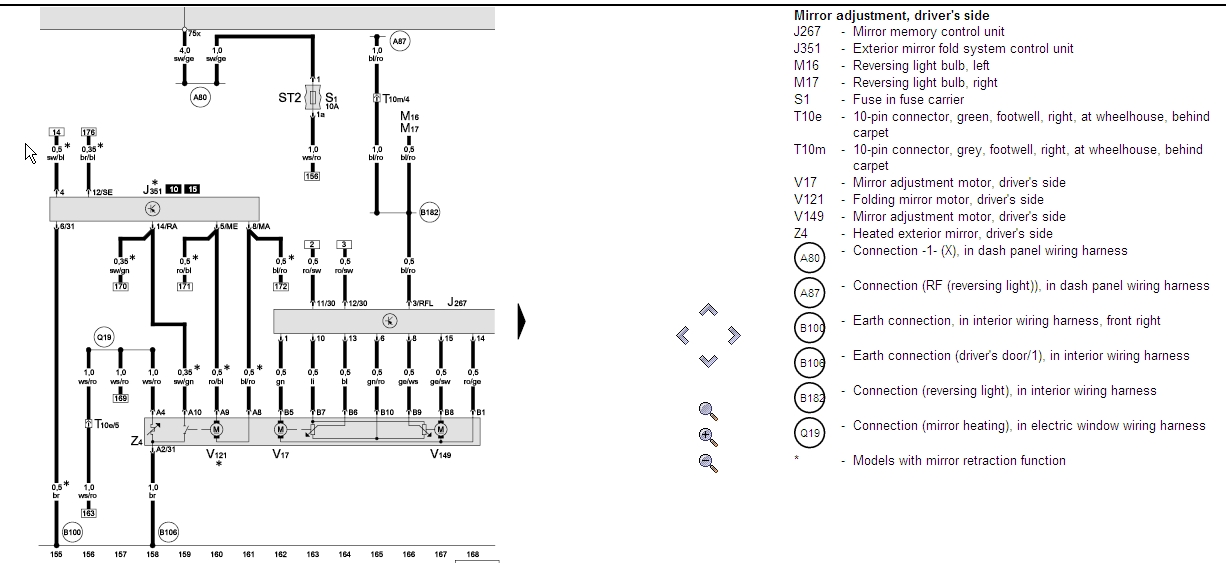 Вопрос вот в чем: я хочу заменить левое зеркало бокового вида (складывающееся), но родного не могу найти (у меня всего одна фишка на подключении). А в наличии есть зеркало от А8, 2000, у зеркала имеются две фишки. Можно ли скомбинировать провода в одну фишку, если да, то пришлите, пожалуйста, схему. 1plaaes5
