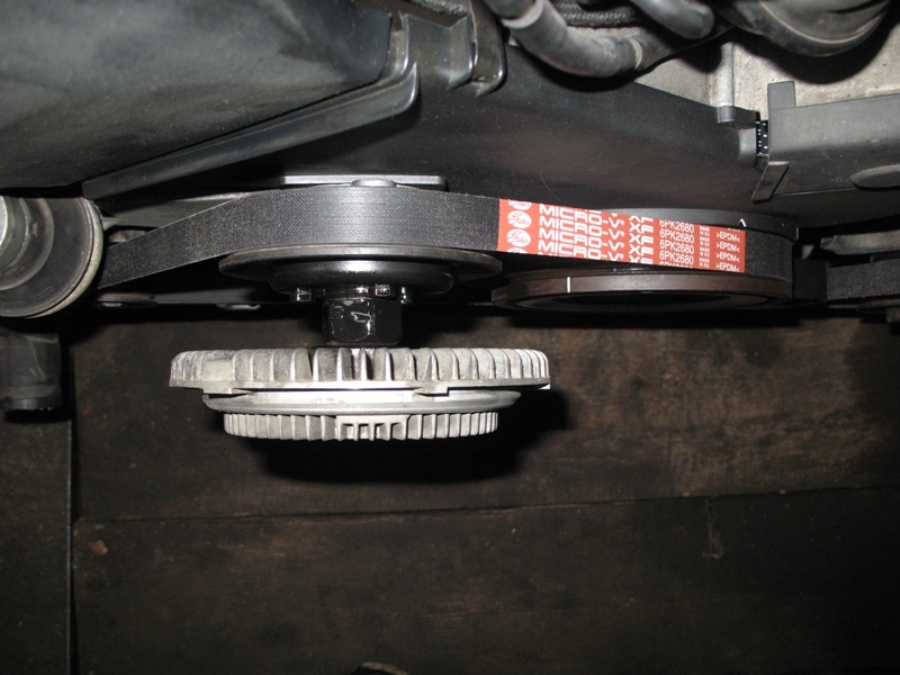 Сегодня снимал ремень, шум перестал. Но на этом ремне есчё много чего сидит, вот как определить? Вот ролик натяжителя не понравился, в руках крутишь, шумит, хочу есчё и виско-муфту снять. Как снять подскажи пожалуйста, или как до подшипника добраться?