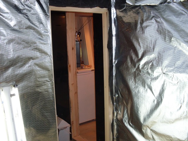 сауна в липовой вагонке,санузел в черном пластике,жилая комната в хвойной вагонке.