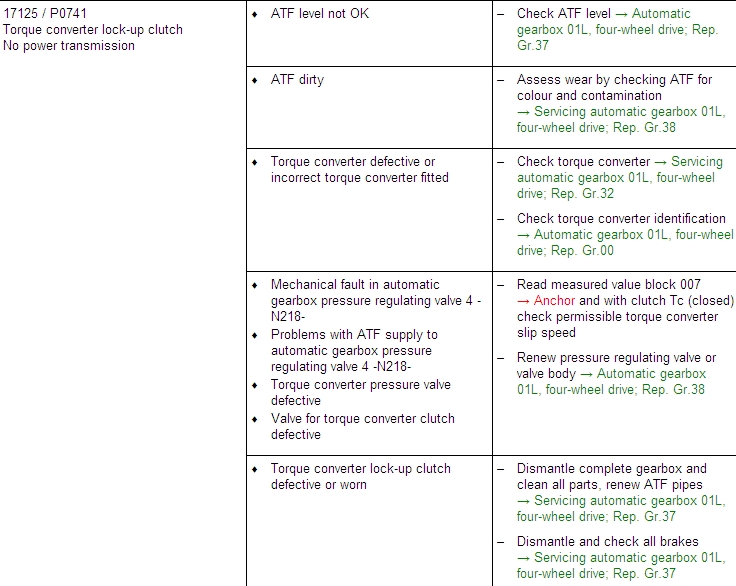 Ошибка 17125 - Муфта блокировки гидротрансформатора