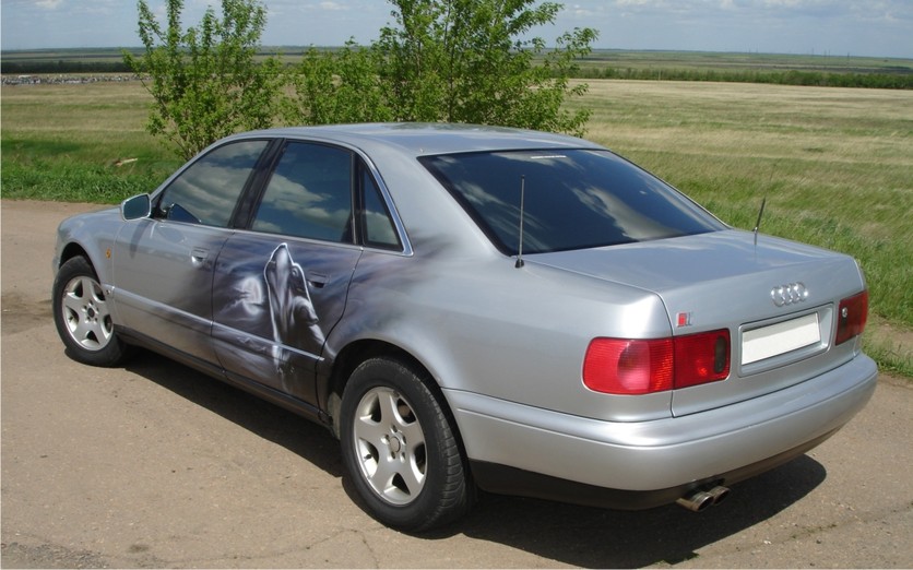 Честно признаюсь левая сторона скопирована с небольшими изменениями, на фото видно Субару. А правая работа рисовальщика. Фото даже близко не передают всю красоту. Снимали на телефон.