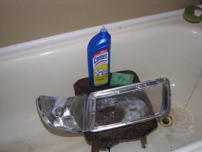 Первывм делом моется фара, первое стекло я шкурил неснимая его с корпуса фары, второе снял, так оказалось легче.