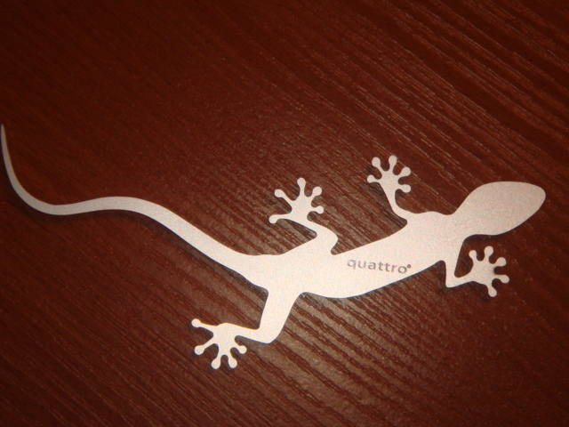 Символ привода quattro не саламандра, а геккон - вид ящериц с очень цепкими лапками, за что собстна и выбрали её в качестве символа, может передвигаться по гладким вертикальным и отвесным поверхностям и по стеклу в том числе