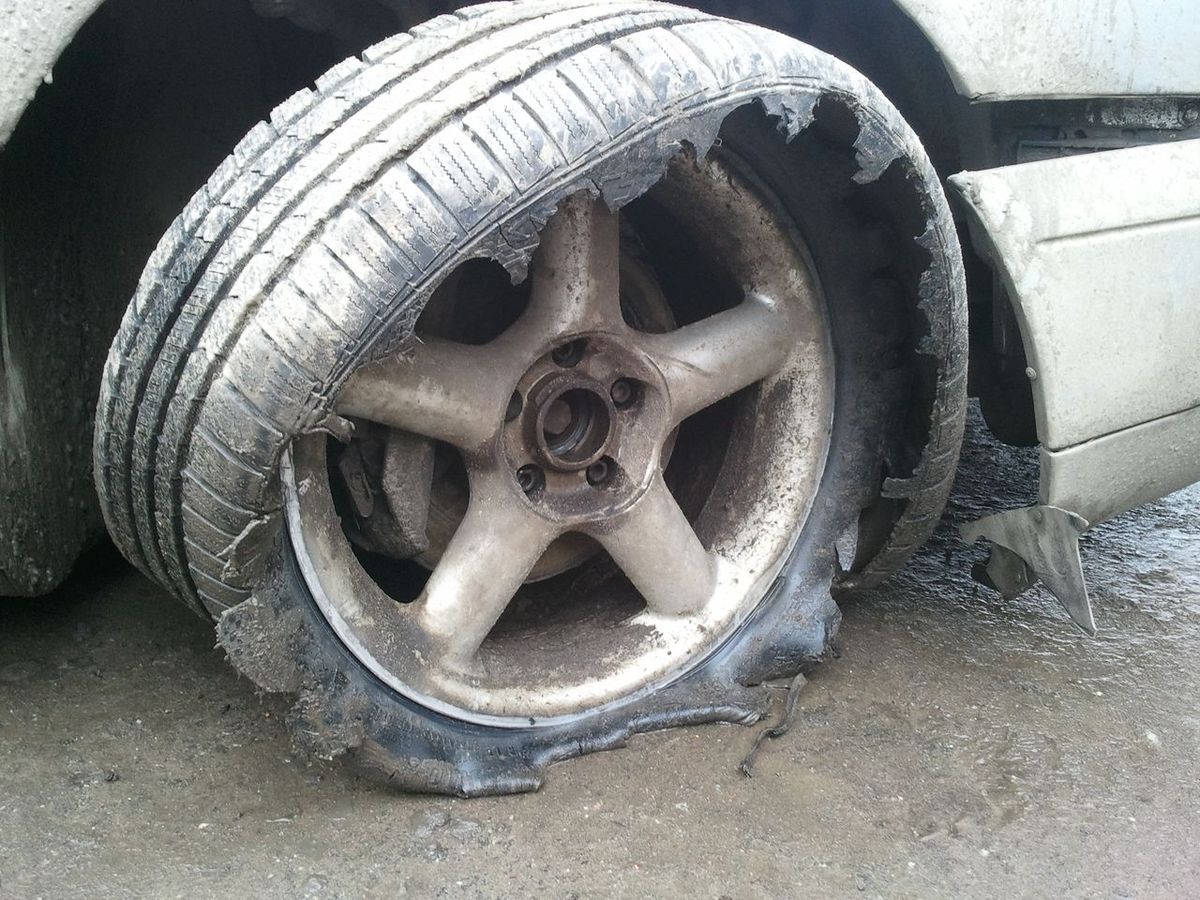 у меня год назад на форике заднее колесо взорвалось - в колее лежал кусок рессоры, переднее колесо его подбросило, а заднее об него разрезалось мгновенно, дыра примерно 10-12 сантиметров. бабах был пипец, сразу резко не остановишься, чтоб машину не потерять, проехал так метров 400. поставил запаску, это колесо потом заварил и оно нормально проехало еще 500 км.
