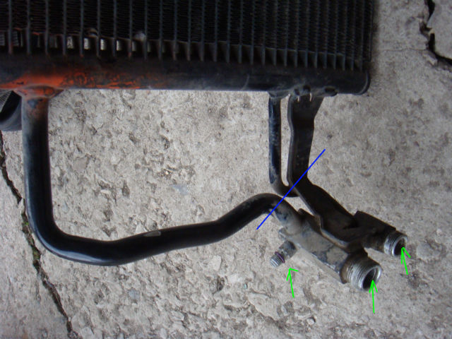 Приехав домой при заправке обнаружилось что с радиатора всё спускает. Он был не закреплён снизу и бился об радиатор охлаждения. были хорошие дырки в нижних 6ти трубках. Различная пайка в течении 2х дней не помогла, сварщик на заводе сказал что все трубки тоже приплавлены и он не сможет заварить уже обрезаные дырявые, т к температура варки выше температуры пайки, т е другие отвалятся. Был куплен б у VAG радиатор, спасибо одноклубнику