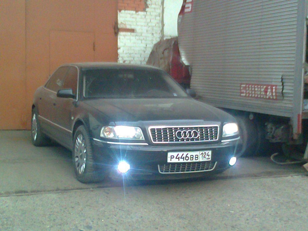 Привет всем! Владею A8 уже 8 месяцев и все небыло времени рассказать и выложить фотографии её. Сегодня не много работы, да и фотографии под рукой, правдо плохого качества, но лучше чем ни чего :D Взял эту машину совсем случайно, даже не планировал брать ее, хотя нравилась она мне очень давно. Притензий вообще нет к ней за это время! За зиму ни разу не подвела, что огромный плюс ей!!! Мотор самый распространеный 4.2, год выпуска декабрь 2000, рестайлинг, черного цвета, лонговский кузов. я так понял она самой полной комплектации, кроме заднего столика для задних пассажиров, остальное есть все. За это время владения ею, руки ни как не дают покоя мне и даже лезут туда, куда по идеи и нет смысла лезть, машина и так полноценная, что какие то изменения будут лишними, но все же, я установил страбоскопы в переднюю решетку бампера, ксенон в туманки поставил 6000К, проставки: перед 12мм, зад 16мм на зимних 17 дисках, пришло время лета привез диски с резиной на 20, ет35, резина 245/40/20 проставки с переду пришлось убрать, так как немного шоркаю подкрылок по трассе на плавных ямах, и на зад поставил 12мм. в выходные на развале завалили задние колеса на 2 градуса, теперь можно и 16мм проставки поставить и колоса тогда будут стоять идеально в арках :D выхлоп от Sки, но если често не нравится он, хочется услышать более выразительный звук V8, ищу себе тюниный выхлоп на нее, установил СГУ, с полицейской машины сняли :D, единственная проблема я не знаю куда запихать сам динамик от нее, под капотом вообще места нет и в бампере тоже, а динамик не маленький 1confuz8 изменил переднюю решетку под Sку, сполер декоративный на крышку богажника поставил, ну и в салоне и в дверях поменял всю подсветку на диодную бело-луного цвета. далее в планах стойки переделать, хочеться по ниже занизить машину и жоще сделать стойки. ну и конечно кузов привести в порядок, то есть освежить краску.