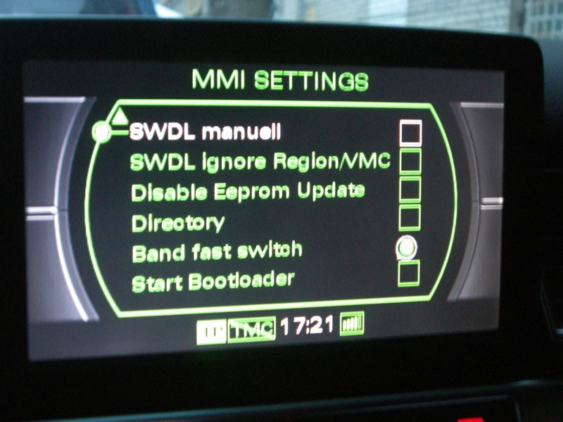 Удалось раздобыть Инструкцию по обновлению ПО MMI High(MMI2G), в которой пошагово описан процесс обновления программного обеспечения MMI для автомобилей, оснащённых MMI-High(MMI2G), например, A8 (4E), A6 (4F), Q7 (4L), A5 (8T) и A4 (8K) через CD-привод автомобиля с последующей регистрацией через систему управления версиями программного обеспечения (Audi SVM) (у официалов).