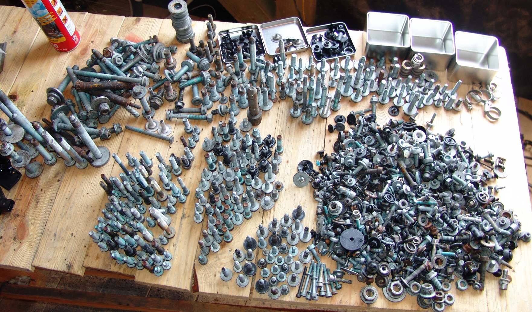 В комплекте отсутствуют лишь некоторые виды пластиковых пистонов, все болты и гайки очищены от грязи.