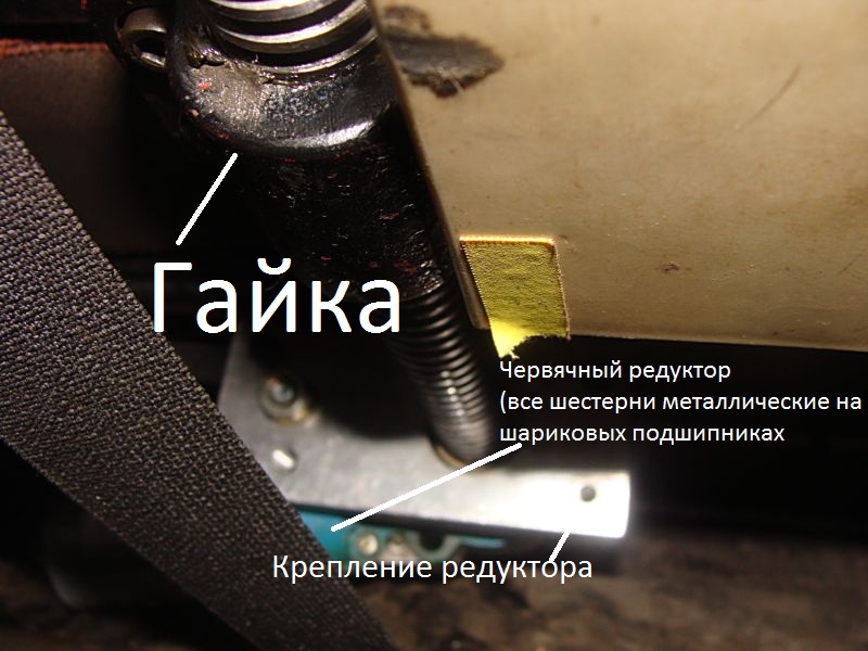 Наконец-то я запустил тот самый интересный мотор. И кнопка оказывается им управляет. Мотор достаточно солидный, с винтом, ответственный за подушку сидения. Мотор двигает только подушку вперёд назад