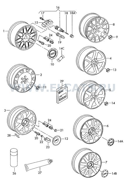 1.Помогите пожалуйста с колпаком. На ауди стоит литье ( на картине под номером 3 ) от которого и потерялся нужный колпак. Проблема в том, что как говорит elcats это литье на 18, но у меня оно на 17. Колпак размером 145мм в диаметре и 20 мм в высоту. На сайте sigma написано что этот колпак ( от 18 литья ) размером 150x150ч40. Может это они так округляют ?