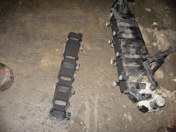 При разборке коллектора надо снимать топливную магистраль, дроссель, соединительное колено двух частей впускного коллектора. По другому или не добраться до болтов, либо не достать сам коллектор с заслонками.