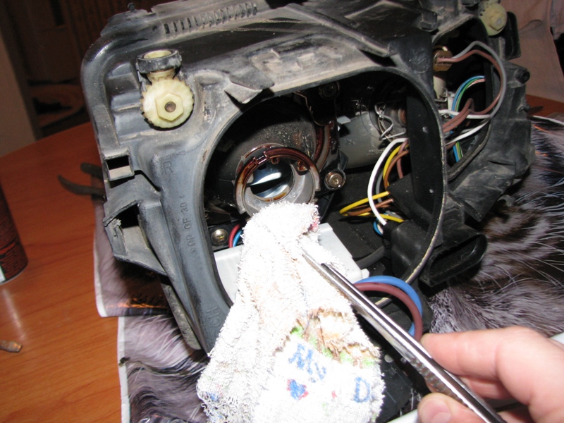 Стекло помыл изнутри, но вот к поворотнику неподлезть.Сначало думал замочить с моющим средством и само отойдёт, но в месте поворотника стекло осталось с налётом, тогда взял проволку и намотал на неё тряпку закрепив лейкопластырем, потом окуратно протёр стекло и отрожатель в месте поворотника.На втором стекле сделал проще,отрезал кусочек тряпки и кинул его внутрь фары,развёл пены и поболтал стекло,тряпка всвою очередь сделала своё дело.