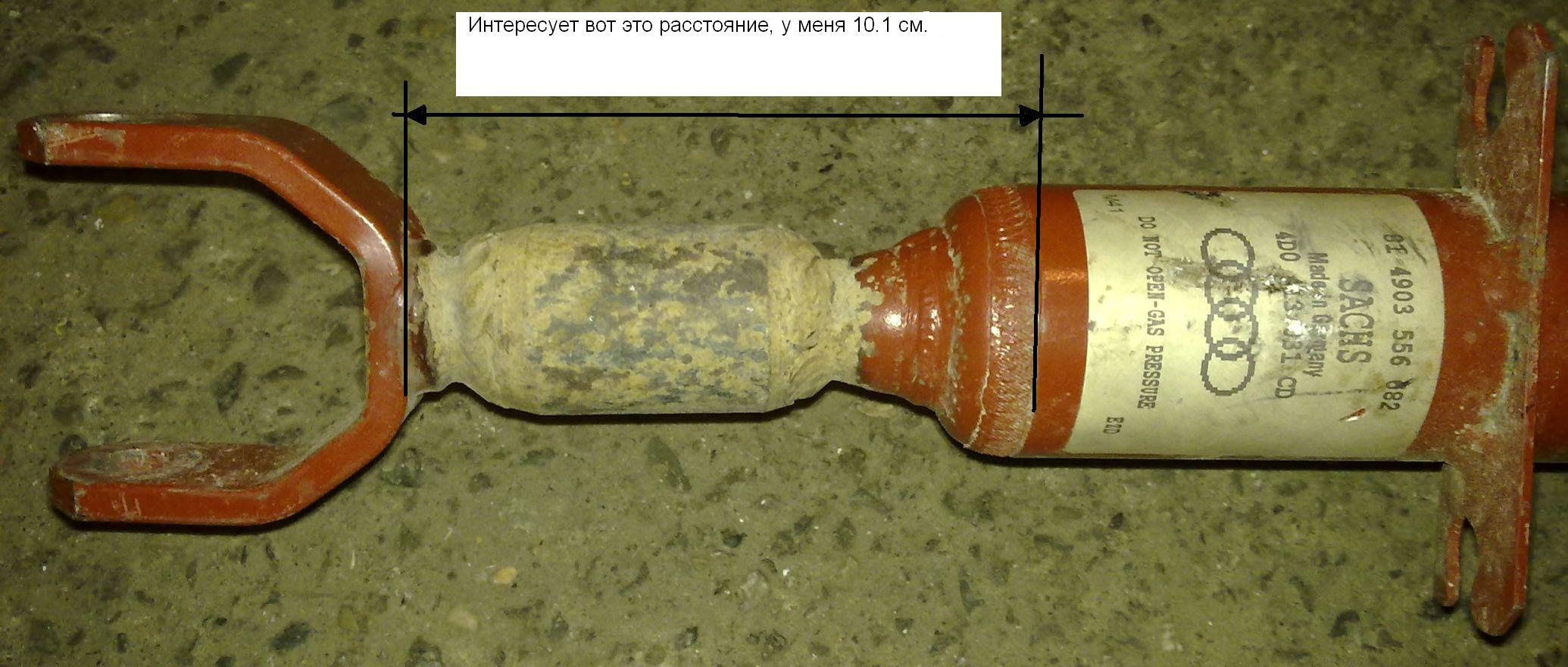 Родные амортизаторы- SACHS 4D0413031 CD , красного цвета . У меня просьба кому не трудно , замерьте расстояние указанное на фото , буду очень благодарен, оно мне необходимо , чтобы определится ставить родные стойки на авто обратно или нет, а может кто знает и без замеров размер таких амортизаторов. Пружины с маркировкой четыре серебристых точек- обозначающих жесткость.