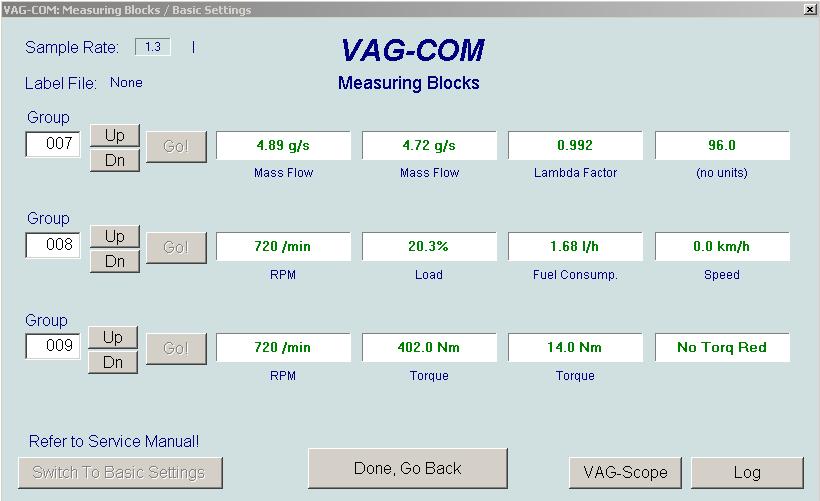 Правый нижний угол, кнопки "VAG-scope" и "Log", первая рисует графики выбранных блоков, вторая сохраняет данные a файл, в динамике, т.е. можно в движении писать лог, потом его анализировать глазками или загрузить в прогу, которая по ним нарисует график.alexxoxol писал(а):Можно по подробнее, что куда нажать
