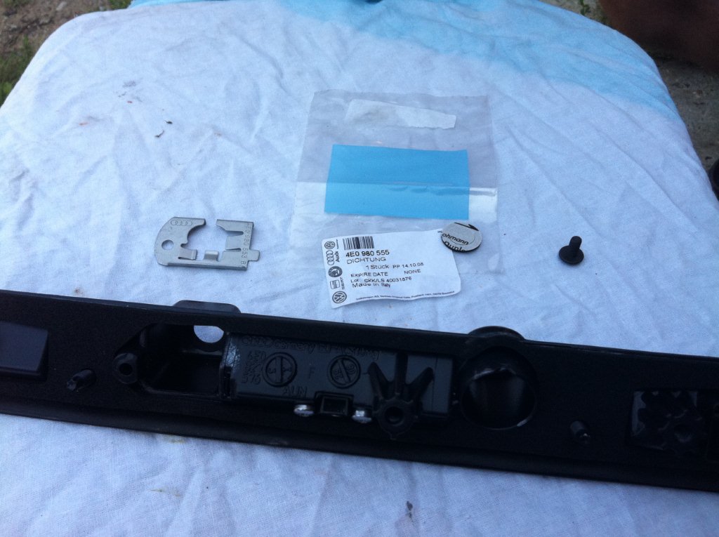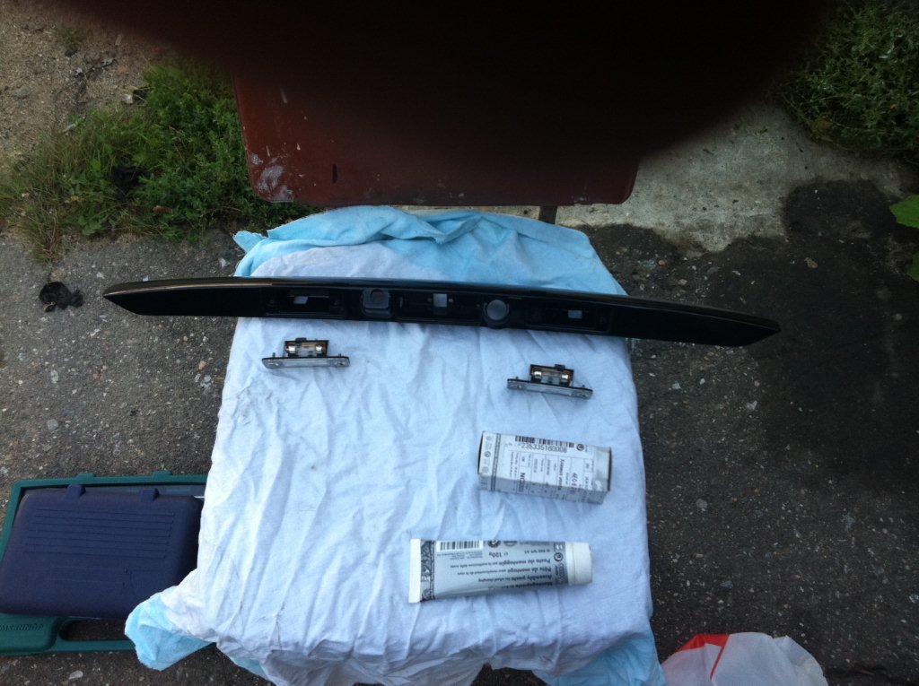 Видим что камера укладывается полностью в габариты старой клавиши, поэтому все разговоры про замену крышки багажника, не более чем досужий вымысел. Устанавливаем новую клавишу, винты подойдут от старой, переставляем фонари подсветки номера: