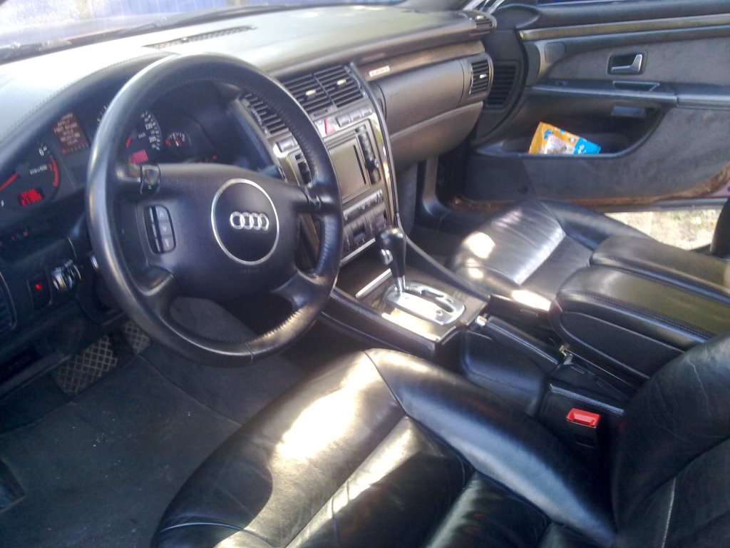 У меня А8 Long 2001г 4.2. И у меня в салоне обсалютно все обтянуто кожей т.е панель, двери и даже потолок со стойками какой то замшей затянуты. из пасажирского сидения столик выезжает