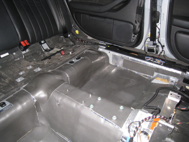 Почти стандартная шумка под хороший автозвук. Особенное внимание в таких вещах уделяется тоннелю коробки-кардана и аркам колес. Двойной сэндвич почти втрое снижает шум и вибрацию.