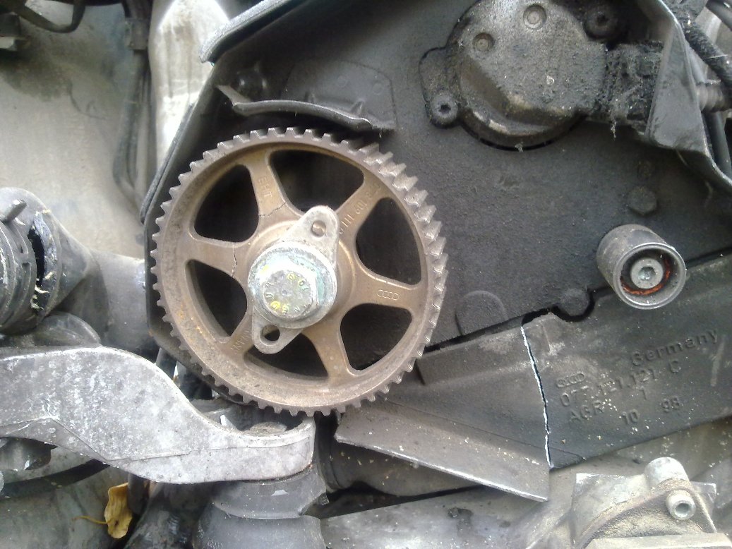 Для начала хотим найти гараж, туда оттащить мой автотруп - пусть зимует под крышей хотя бы.. Параллельно надо поискать нормальный двиглан б/у, решили перебрать и собрать из двух один нормальный, с попутной заменой всех необходимых или просто подуставших агрегатов! На фото ниже видно, что шкивы голов, помпа - это как минимум на выброс, плюс порванный ремень грм - усе плохо