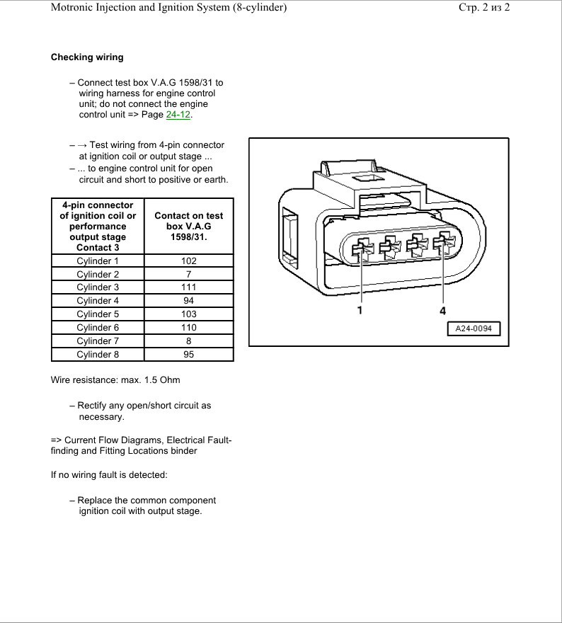 вот я тоже не знаю, они там все вплетены в косу, этож не силовые провода как в старых ауди, их если менять то всю косы до блоков, и цена проводов будет не малая наверноshtepa писал(а):как проверить?sakuro писал(а):проверь провода к катушкам.