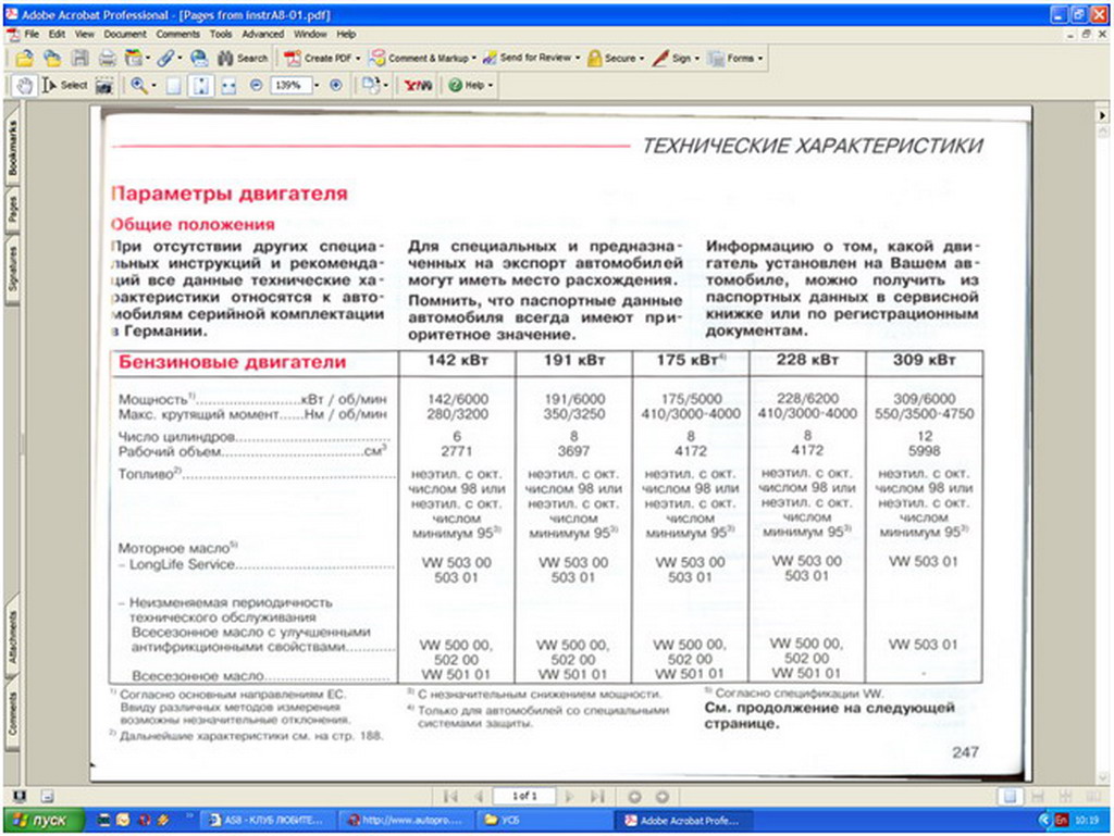 в исключительных случаях можно использовать А2/АЗ для бензиновых двигателей или ВЗ/В4 для дизельных двигателей. Дизели с насосом-форсункой должны использовать ЕО VWG 505.01. Для всех бензиновых и дизельных моделей выпуска 2000г без AVS рекомендуются одобренные на настоящий момент ЕО VWG 505.01 и соответствующие стандартам ЕО VWG 500.00 и 505.00. Также можно использовать ЕО VWG 503.00 для бензиновых
