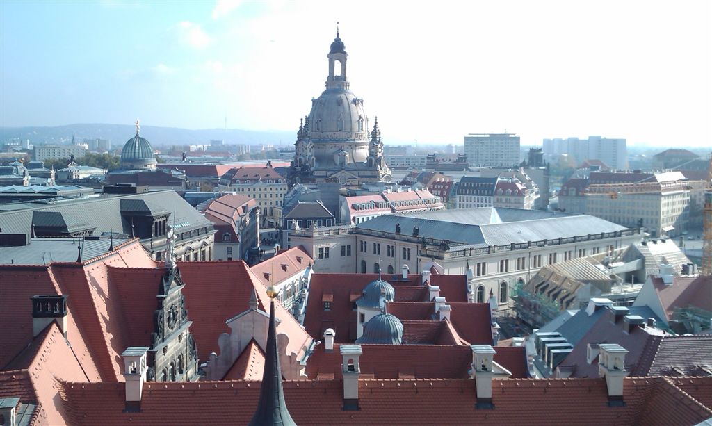 Дрезден, столица Саксонии. 125 км от Праги. В навигаторе забил просто центр города. Привёл прямо к подземной платной парковке. По пути пару раз нарвались на ремонт дороги по Чехии, пустили в объезд. Зато посмотрели как живёт Чехия, всё почти также как в Польше, только менее красочно. Поняли что въехали в бывшую ГДР только по знаку Евросоюза, надписи Германия и таблице со скоростями. Как раз выехали из тоннеля и сразу Германия. Дороги вполне обычные, даже для России, имею ввиду там где они действительно хорошие. Платить не пришлось. Ограничение по автомагистрали 130 км/ч, по н/п 50 км/ч. Ехали в тумане, догнали пару балбесов без света...Заехали в одну из придорожных деревушек. Чисто, аккуратно и никого....Правда было часов 10-11 утра пятницы. В Дрездене купили путеводитель по городу на русском языке и пошли гулять. Дворец, театр