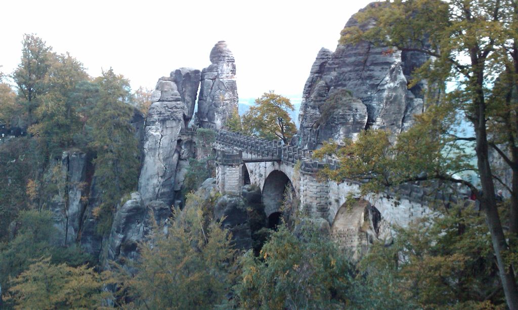 В путеводителе по Дрездену и Саксонии нашли "Саксонскую Швейцарию", горы песчаника на берегу Эльбы. Красоты достойные любования. Видимо популярное место среди альпинистов. Стоит отель и много народу.