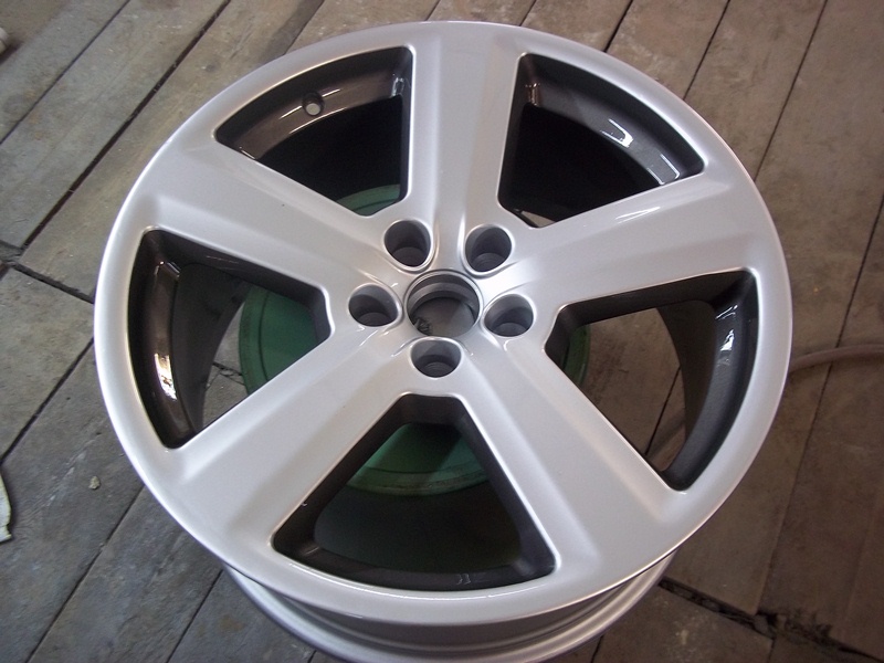 Прикупил на зиму комплект реплики на R18 J8.5 ET35.Диски нуждались в покраске,решил красить сам так как порошковой покраской в нашем районе незанимаются.Класил в два цвета,обычным пуливизатором.Внутри диска и по бокам спиц покрасил тёмно серым "мокрый асфальт" а сами лучи в серебристый "снежная королева".Так же были покрашены колпачки в "мокрый асфальт".