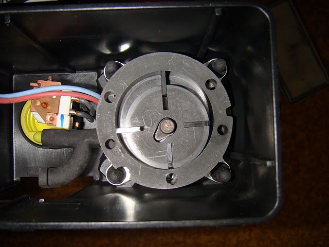 Необходимо заменить блок насоса в сборе с электромотором. На мой взгляд, эту процедуру проще выполнять со снятым «сэндвичем». Для снятия электромотора нужно отсоединив воздушную трубку, аккуратно протолкнуть 4 резиновых крепления насоса внутрь. Затем, отсоединив питание вынуть сам мотор.