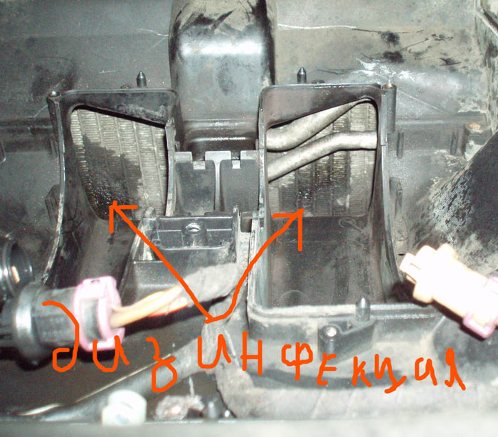 И наконец то открылся доступ к радиаторам климата! Давно я хотел их продезинфицировать... Салон при включении печки, особенно после долгого стояния, наполнялся пикнтным запахом перегноя с Баскервильских болот