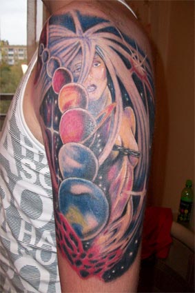 Из Тулы кстати татуировал одного человека. На фото- ангел на спине. Зовут Денис. Ездит на затюненой 10-ке бело-черного цвета по Туле. Похож на Тимоти. Еще они там гонки устраивают. Мож кто знает, мало ли, земля круглая