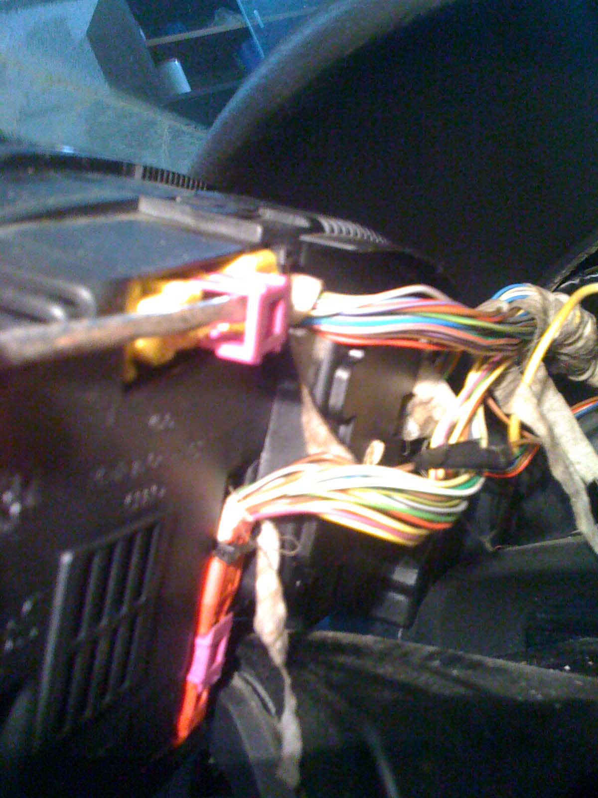 а конкретно,демонтируем жгут проводки с рулевой колонки.снимаем все фишки,отстегиваем все разъмы.их там много.проводка закреплена пластиковыми одноразовыми хамутиками.режем их.(предворительно,запасаемся новыми).